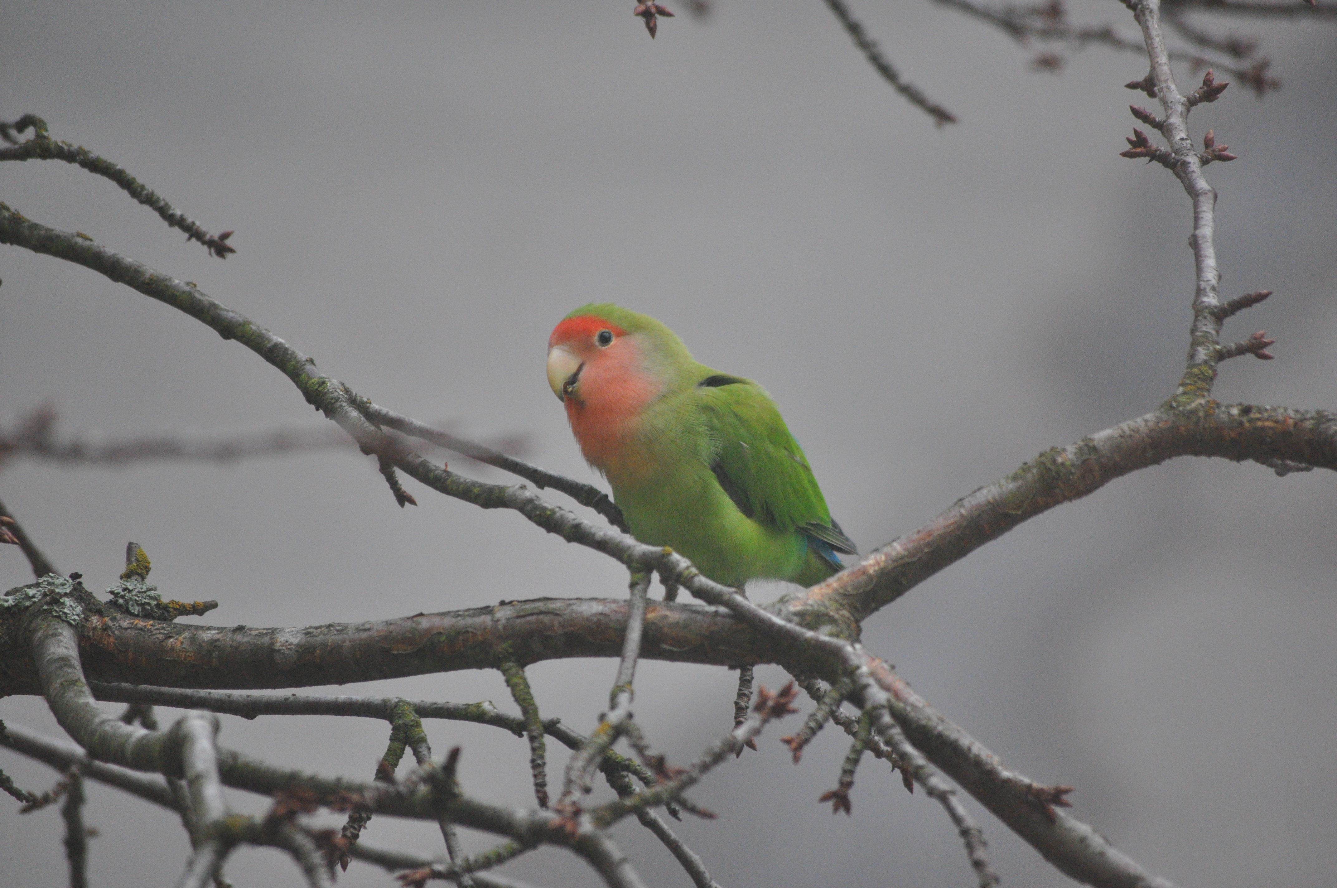 En rosenhuvad dvärgpapegoja hälsar på utanför mitt fönster.