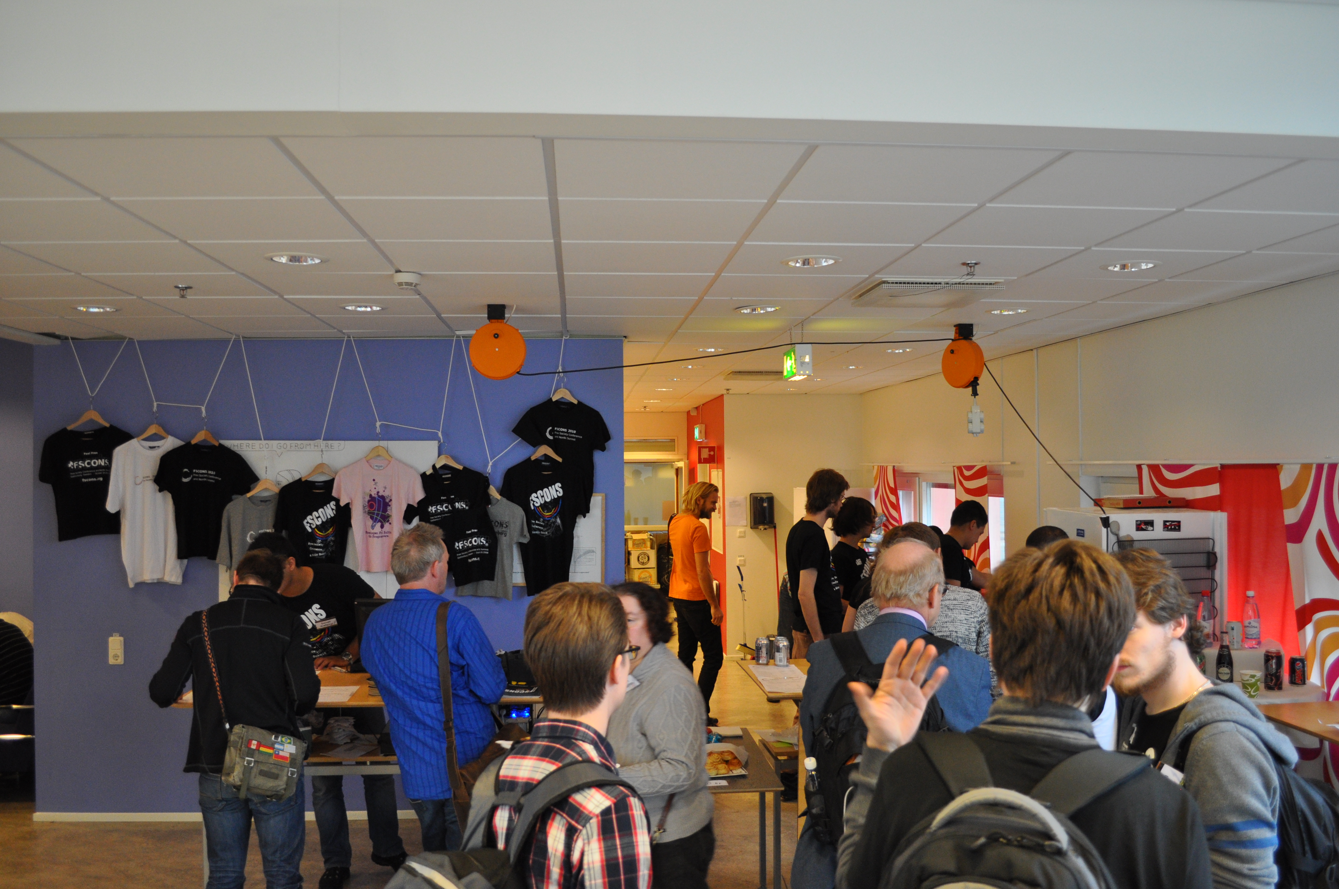 Mat, tröjor med mera säljs från en tillfällig disk på FSCONS.