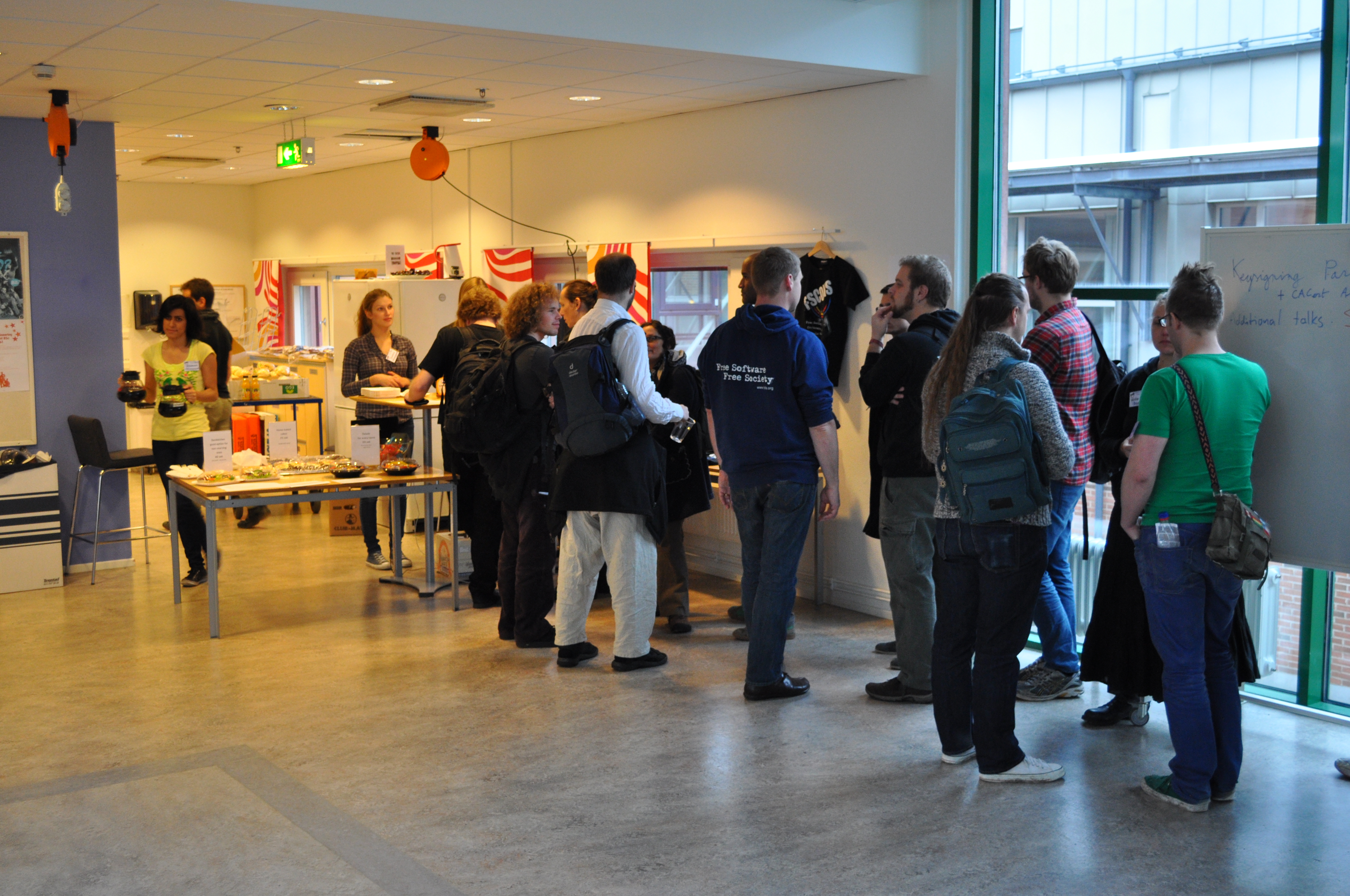 Mat och dryck säljs från en tillfällig disk på FSCONS.