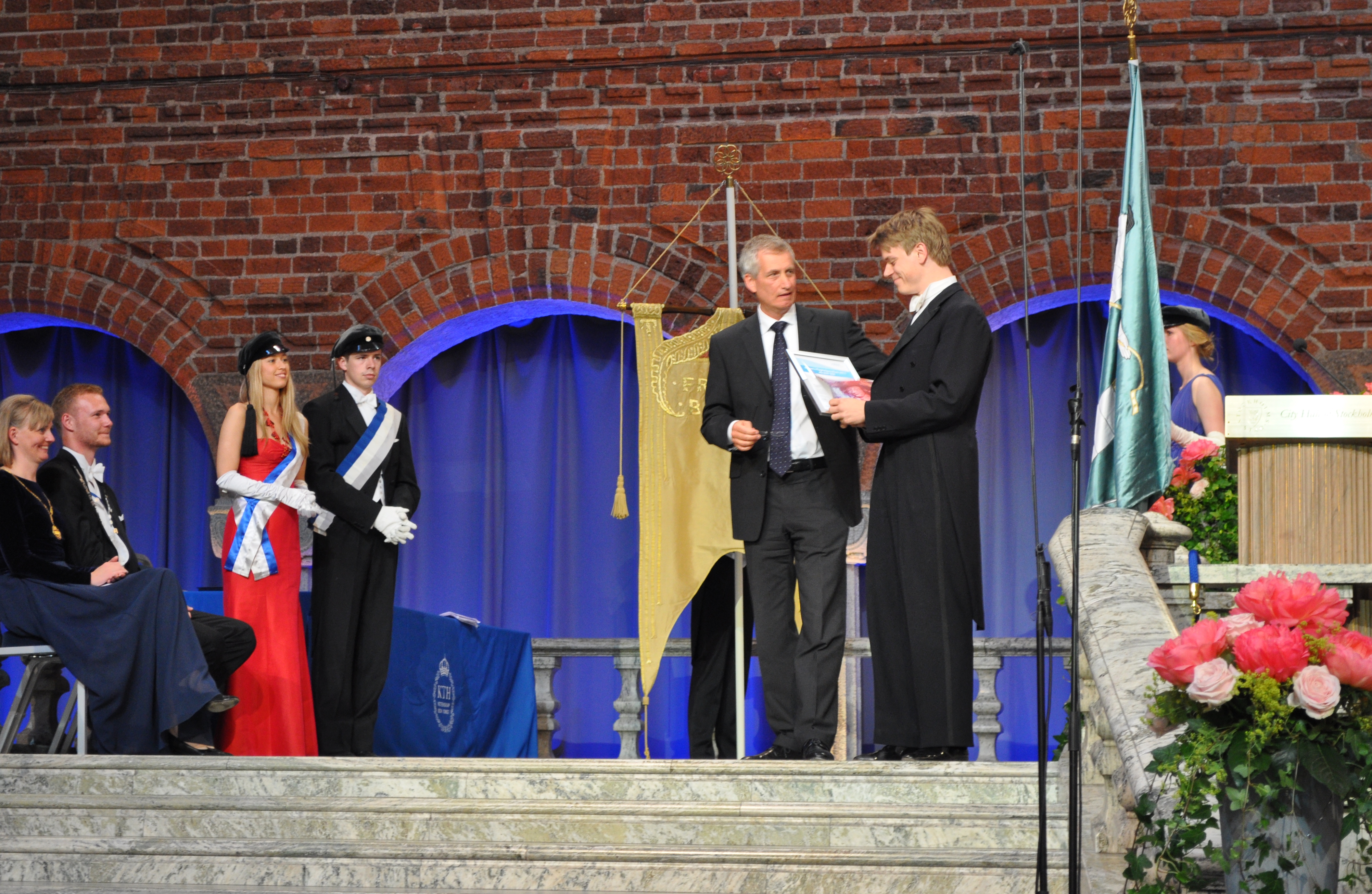 Tomas Rosén tar emot ett stipendium från Xylem.