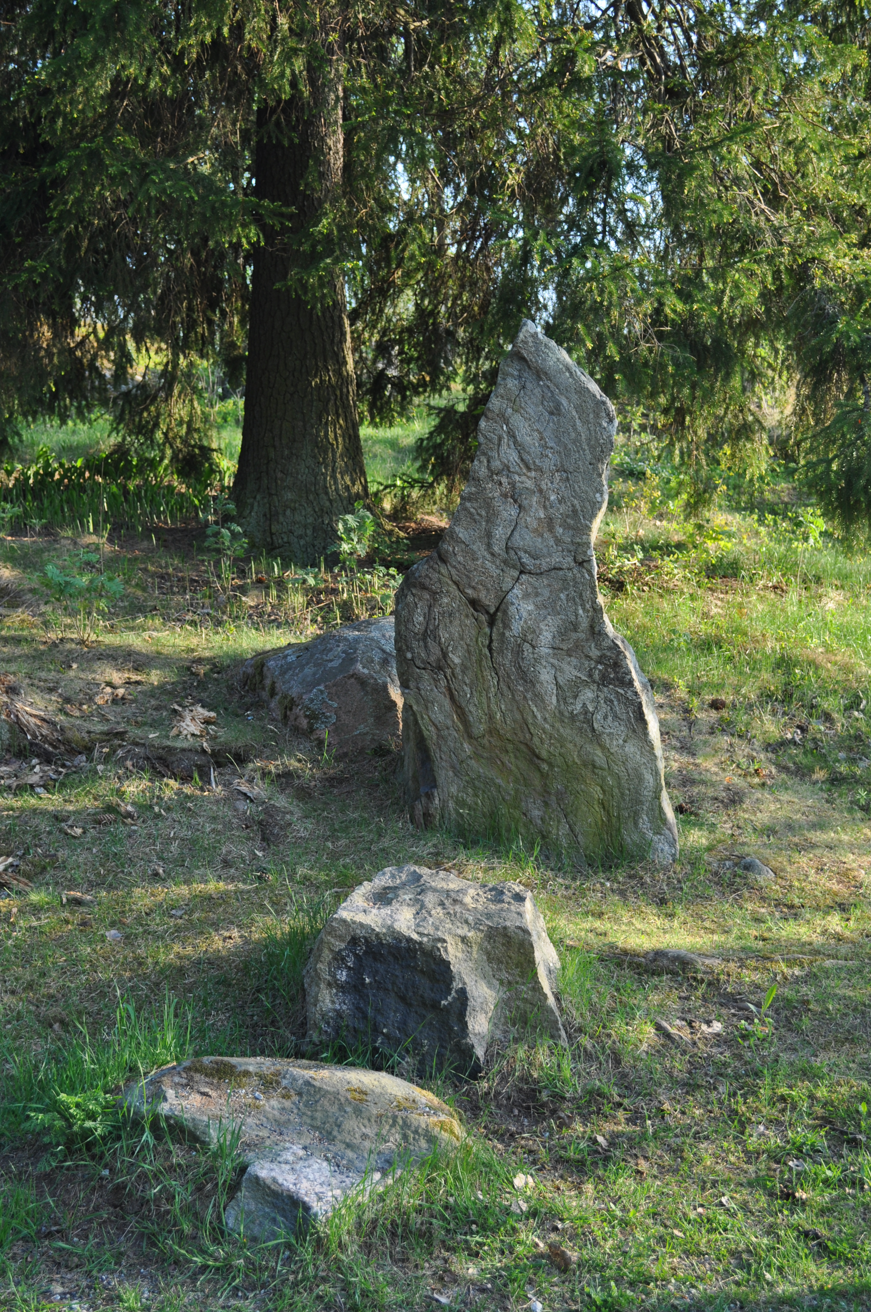 rest sten utan inskrift (Spånga 80:2) vid Husby gravfält i Stockholms kommun