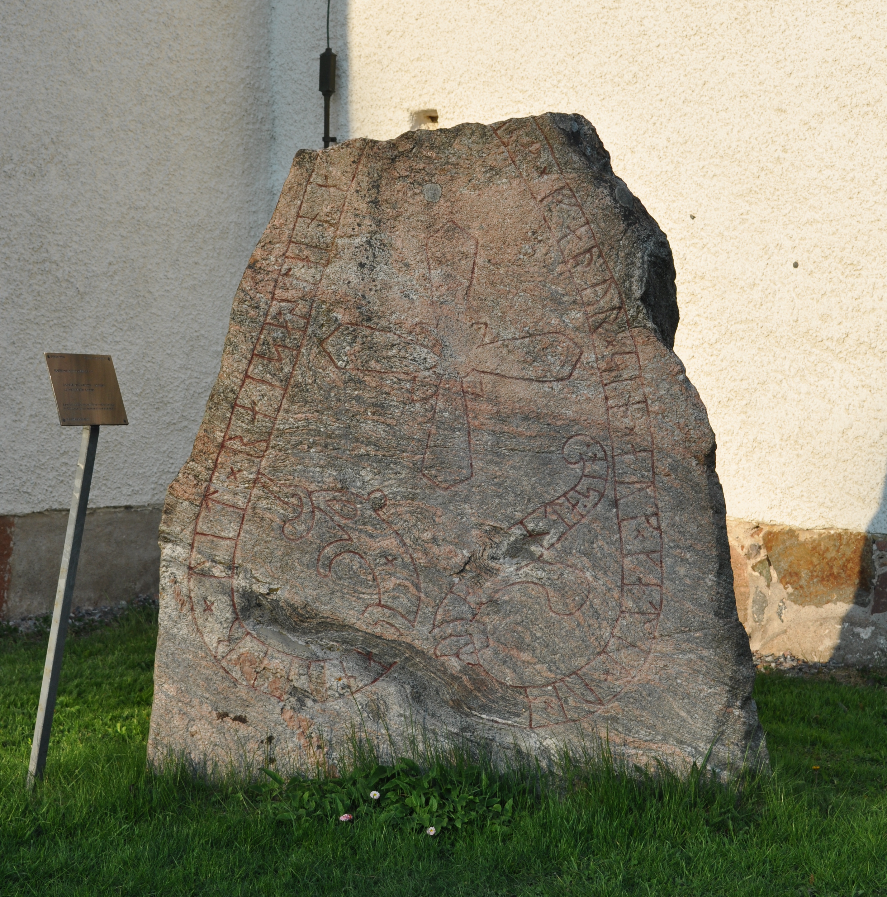 inskrift: ᛭ᛅᚾᚢᚾᛏᚱ×ᛚᛁᛏ×ᚱᛅᛁᛋᛅ᛫ᛋᛏᛅᛁᚾᛅ…ᚱᛅ×ᚠᛅᚦᚢᚱ×ᛋᛁᚾ×ᛅᚢᚴ×ᚴᛅᛏᛁᛚ×ᚢᛁ×ᛅ…ᛦᛒ…ᚾᛏᛅ᛫ᛋᛁᚾ᛫
