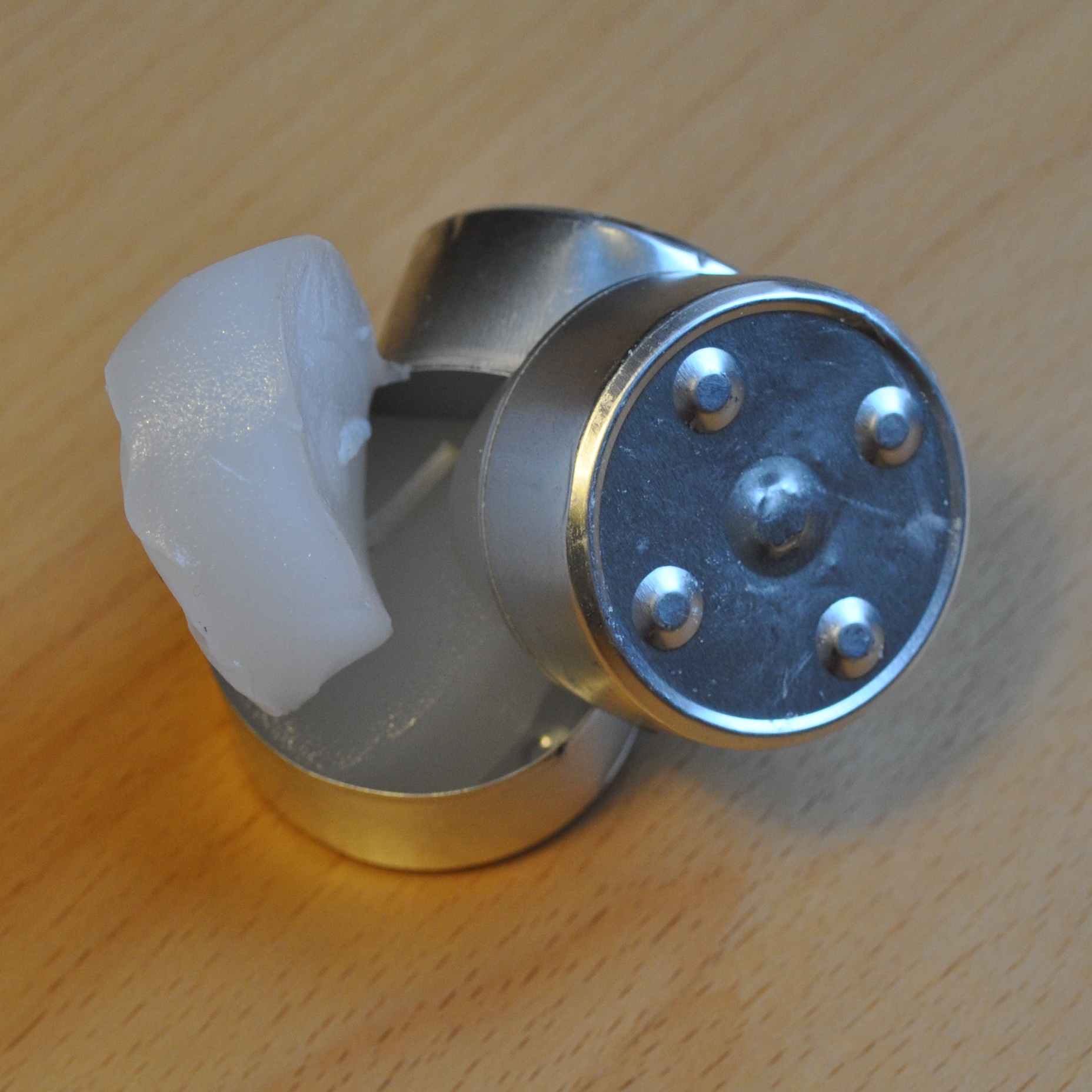 värmeljus som förvarats huller om buller i en påse en varm sommar