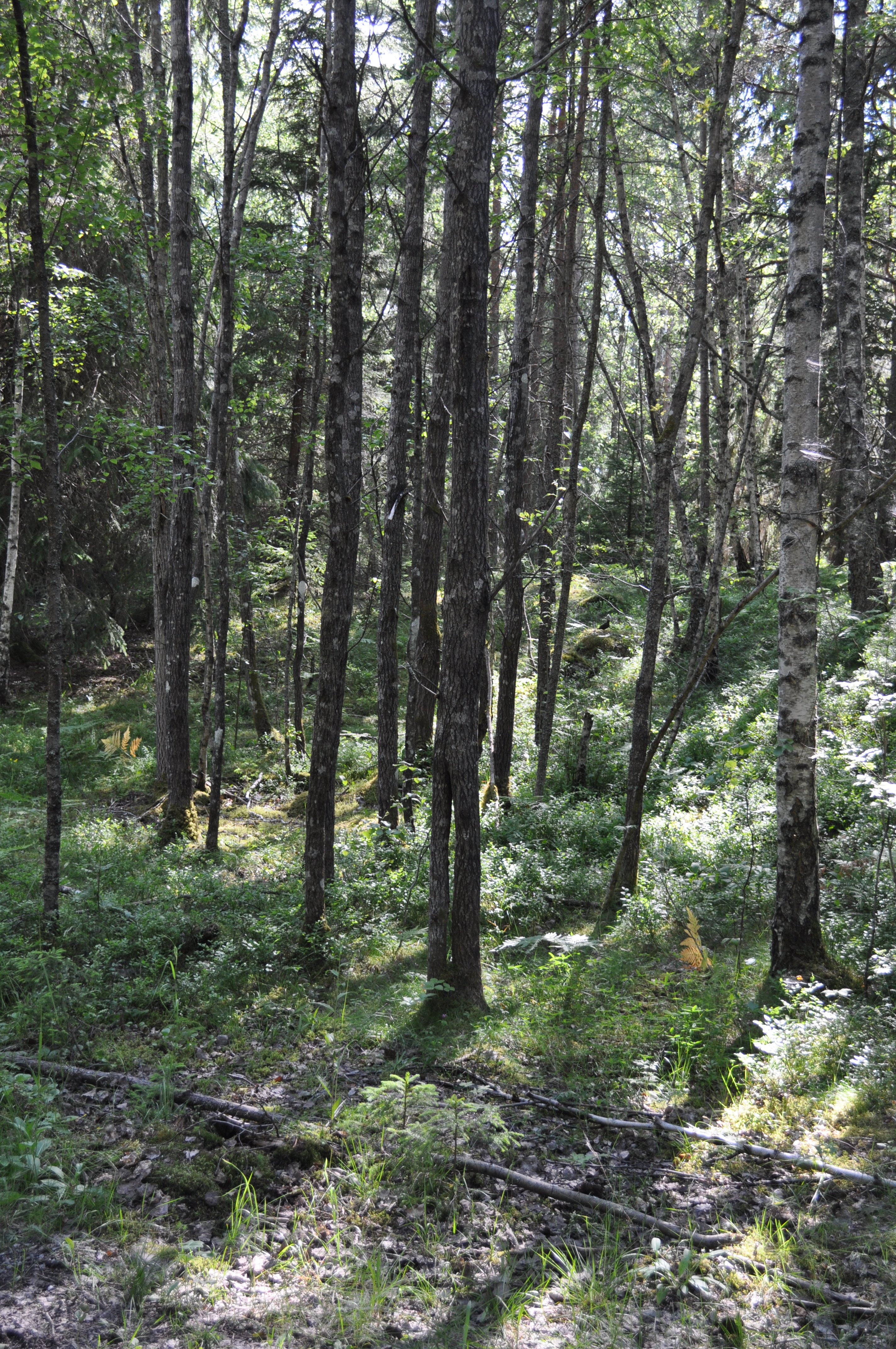 tvåbent aspstam nära Ormudden vid Säbysjön, översikt